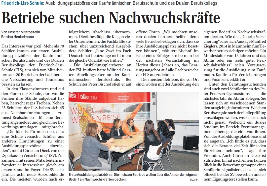 » "Ausbildung: Friedrich-List-Schule bietet mit ihrer Börse Orientierung bei der Wahl des passenden Berufs - Gut beraten zu Lehre oder Studium"