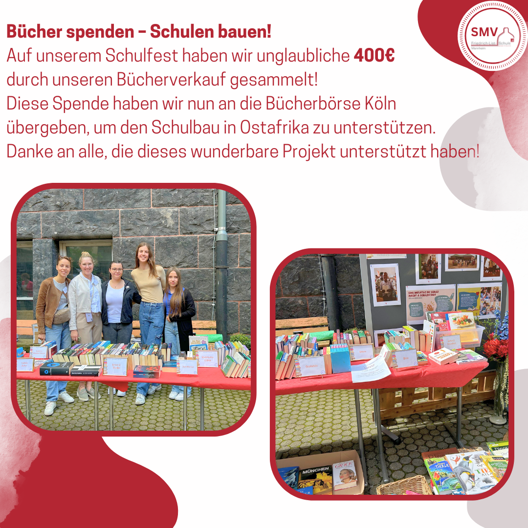 » Bücher spenden - Schulen bauen! Auf unserem Schulfest haben wir für dieses Projekt unglaubliche 400 € durch unseren Bücherverkauf gesammelt! Danke an alle Unterstützer!