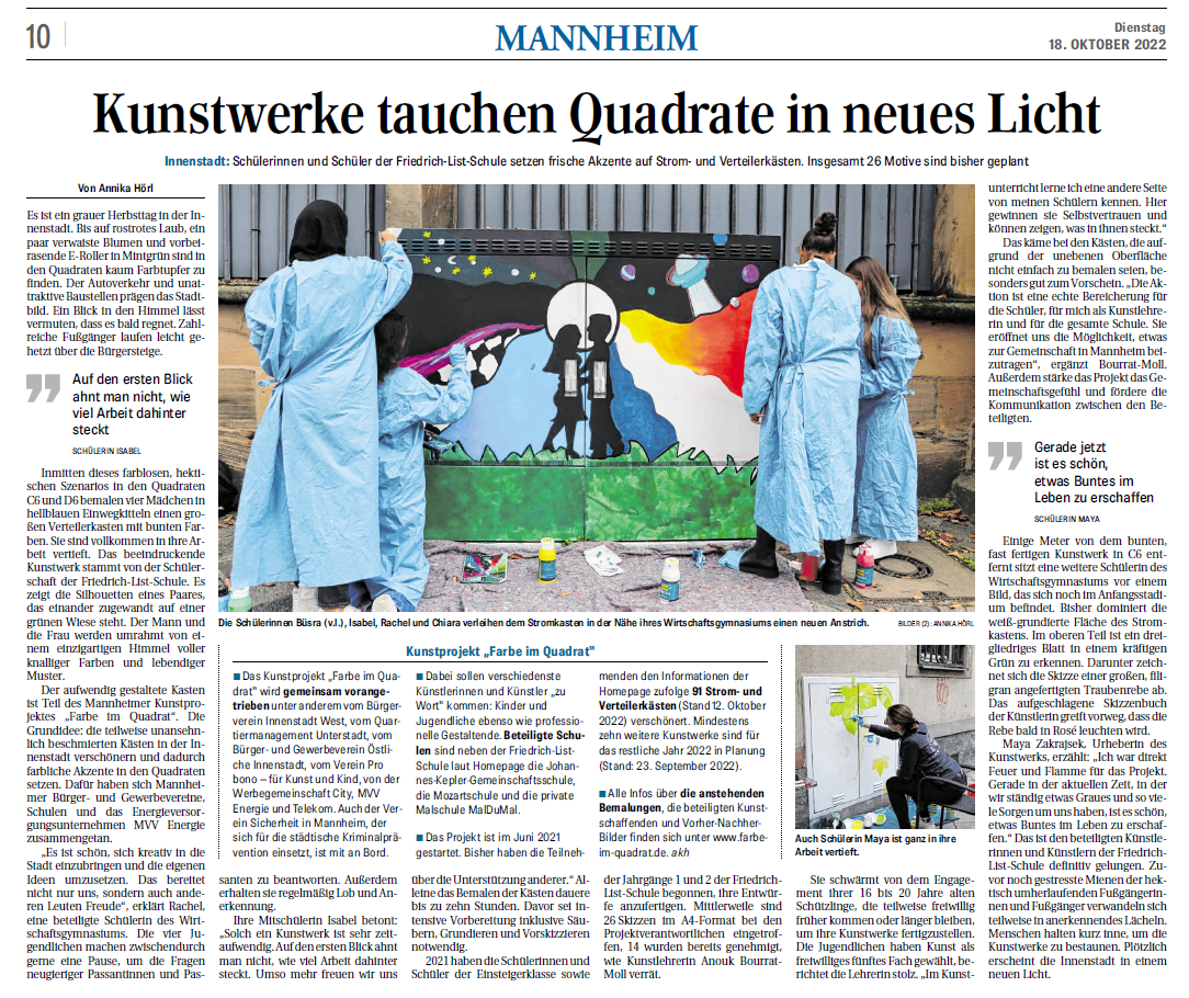 » "Kunstwerke tauchen Quadrate in neues Licht - Innenstadt: Schülerinnen und Schüler der Friedrich-List-Schule setzen frische Akzente auf Strom- und Verteilerkästen."