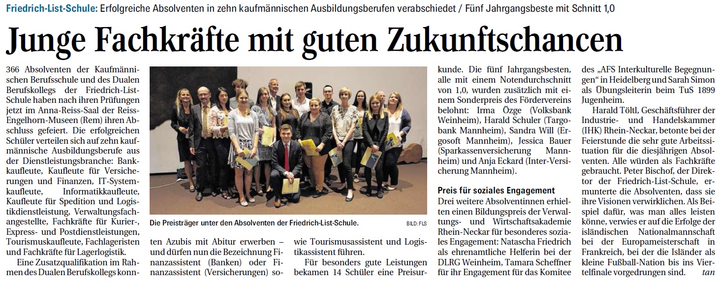 FLS-Abschlussfeier der Kaufmännischen Berufsschule und des Dualen Berufskollegs - Preise für großes Engagement