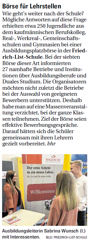 "Ausbildung: Friedrich-List-Schule bietet mit ihrer Börse Orientierung bei der Wahl des passenden Berufs -