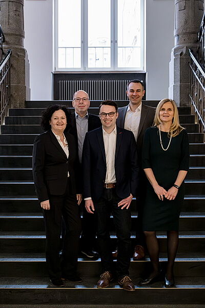 Schulleitungsteam: StD‘in Regina Bilabel-Trampert (stellv. Schulleiterin), StD Wilfried Gerster , OStD Christian Löffler (Schulleiter), StD Andreas Gerold, StD'in Karen Weinand (v.l.n.r.)